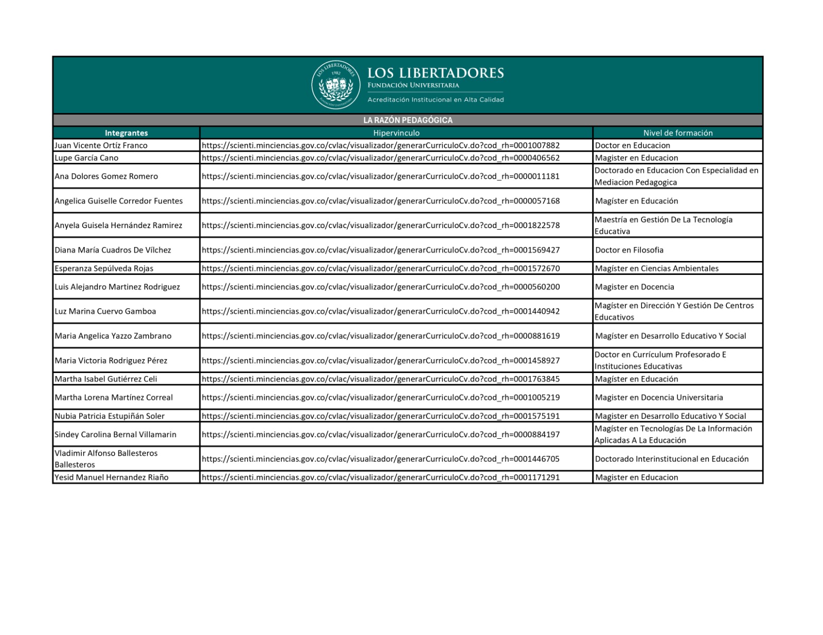 Código CCRG: COL0144461