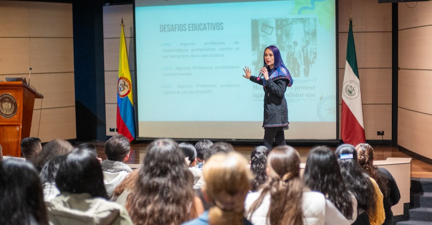 Durante su intervención académica, Bernal invitó a los asistentes a ampliar la comprensión de la tecnología en el aula.