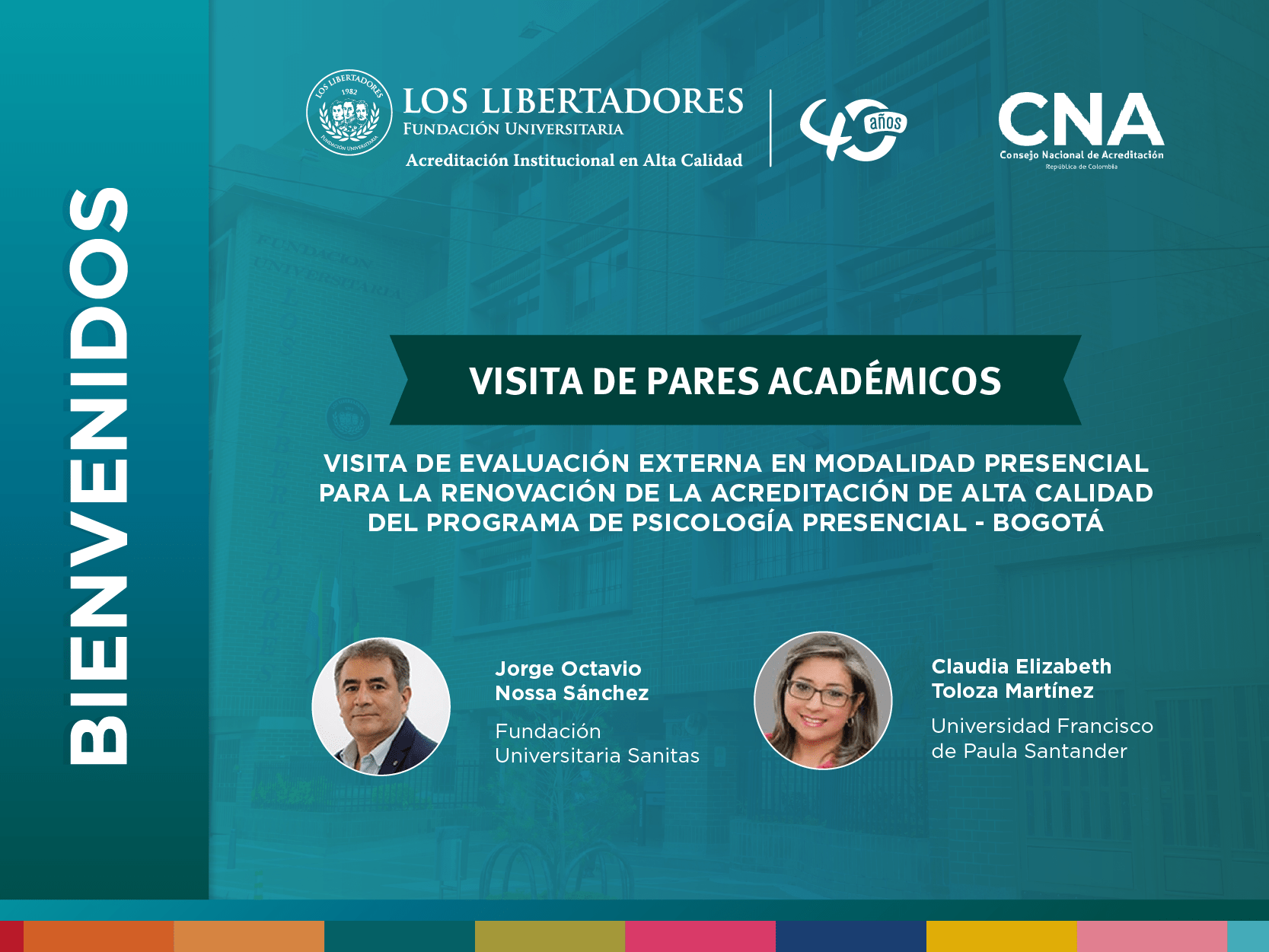 Los días 1, 2 y 3 de diciembre, la Fundación Universitaria Los Libertadores recibirá la visita de evaluación externa para el programa de Psicología, que se ofrece en la modalidad presencial en la ciudad de Bogotá, en el marco del proceso de renovación de su acreditación.